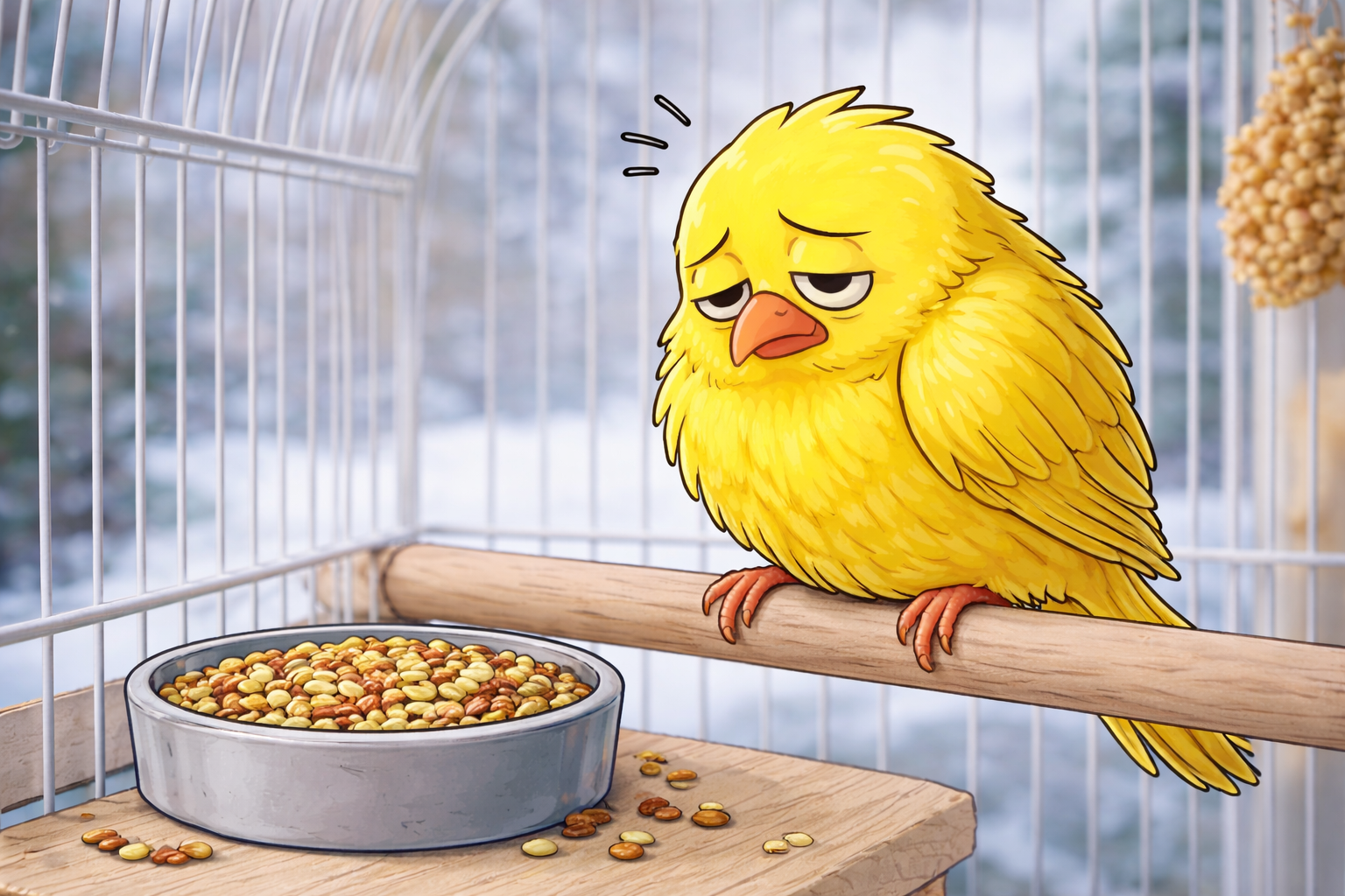 Kanaryalar seçici kuşlardır. Bayatlamış, nemlenmiş veya kalitesiz yemler iştahsızlığa yol açabilir. Ayrıca ani yem değişiklikleri de kanaryanın yem yememesine neden olabilir.